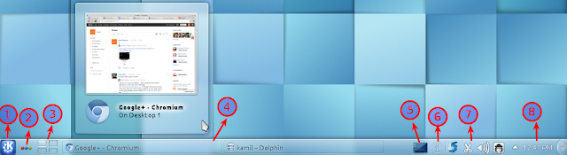 3) Next to Activities is your Pager widget for managing your virtual desktops. I prefer to keep four virtual desktops but one can keep upto 20 virtual desktops.